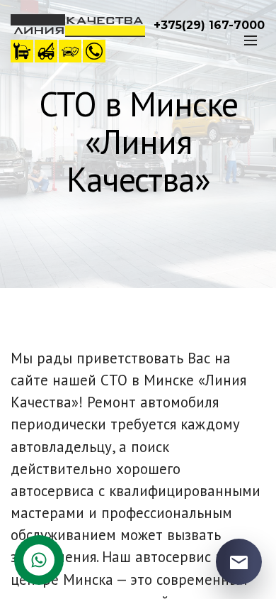 | SEO-описание | СТО в Минске "Линия качества" - широкий спектр услуг по техническому обслуживанию и ремонту автомобилей всех марок. Автосервис №1 в Минске. |