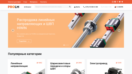 | AI-анализ | This online resource is a limited liability company named "Кюгель" based in Belarus, represented by the domain PROLM.BY. It offers a catalog of various industrial components and accessories for purchase. The main product categories include linear guiding systems, such as linear bearings and linear roller bearings, as well as their respective accessories like carts, rails, and systems. Other product categories consist of shafts and spindles, electric motors and drives, gears and reducers, clamps and fasteners, and various other components and tools. Key brands featured in the catalog are SKF, Timken, and Hiwin. The website also provides information about the company, payment and delivery options, and contact details. |