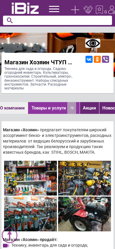 Название / Заголовок | Магазин Хозяин ЧТУП СветлМатик - Техника для сада и огорода. Садово-огородний инвентарь. Культиваторы, газонокосилки. Строительный, электро-, бензоинструмент. Наборы слесарных инструментов. Запчасти. Расходные материалы. . 247434, Светлогорск, , Интернациональная, 38 |