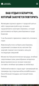 | AI-анализ | --- This website belongs to a sanatorium named Березина, located in Borisov, Belarus. The title of the website is "Санаторий Березина" and it offers health treatments and vacations. The most frequently used words on the website are "0177" (used 12 times), "375", "березина" (used 7 times), "2025", "маркетолог", "путевок", "177", "лечение", "предлагаем", "заказ", "отдых", "приемная", "санатория", "звонка", "телефона", "929969", "774565", "санаторий", and "санатории" (each used 3 times), |