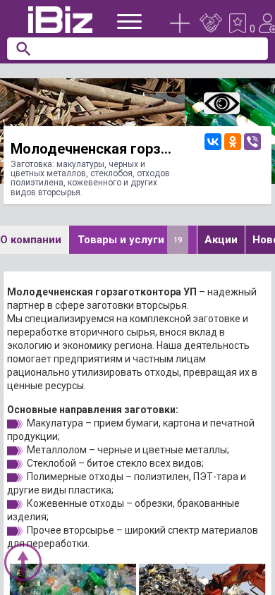 favicon Молодечненская горзаготконтора УП - Заготовка: макулатуры, черных и цветных металлов, стеклобоя, отходов полиэтилена, кожевенного и других видов вторсырья.. 222306, Молодечно, , Ларина, 4
