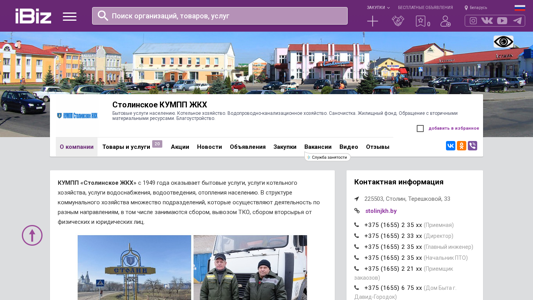 | AI-анализ | --- This website belongs to Stolinское КУМПП ЖКХ, a communal services company based in Sтолин, Belarus, with a focus on providing various services to the population. The company offers heating services, water and sewage services, and waste disposal services. Additionally, it manages the housing fund and deals with secondary material resources. The website provides information about the company, its services, and contact details. The search function allows users to browse free classified ads related to purchases, and the company offers various products and services in the "Companies" section. The site is operated by Ibiz.by, and users can also find news, vacancies, and reviews in the "News", "Vacancies", and "Reviews" sections. |