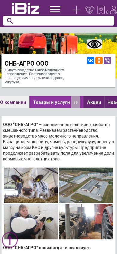 | AI-анализ | The portal is for SNB-AGRO OOO, a modern agricultural company that focuses on both livestock farming of the meat and dairy variety, and crop farming, including wheat, barley, triticale, rapeseed, and corn. The website provides information about the company, its products and services, and includes sections for news, vacancies, and announcements for purchases. Key farming activities include milk production and the raising of dairy cows, with a herd size of 2856 heads as of December 2023. The company operates two modern dairy farms, "Kalachi" and "Kremenets," which utilize robotic systems. The main business area is milk production, offering high-quality products at reasonable prices with comfortable delivery options. Visitors can find information on how to reach the company, as well as usage conditions and a way to create their own |
