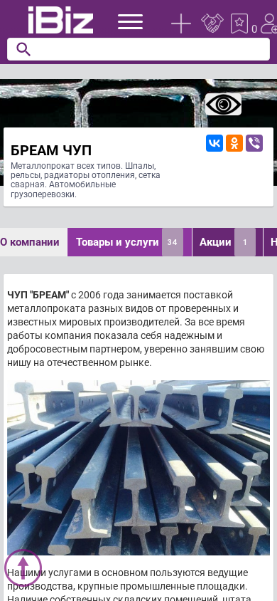 | AI-анализ | The website is a business platform for Chup BREAM, a metal processing company located in Minsk, Belarus. The company specializes in the production and sale of various types of metal products, including rails, beams, metal sheets, radiators for heating, and solder mesh. Additionally, they offer trucking services. The website provides a map for directions, contact information, and the company's address at 220024, Stebeneva, 20/2, office 301. The company's name, "BREAM CHUP," has been in operation since 2006, supplying metal products from reputable international manufacturers. They pride themselves on being a reliable and trustworthy business partner, serving major industries and production sites. With their own storage facilities, a skilled and experienced workforce, transportation fleet, and modern equipment, they are able |
