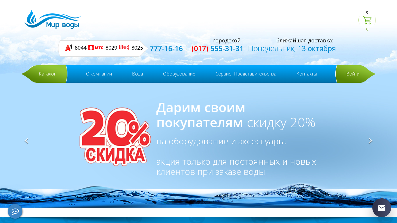 | SEO-описание | Заказать питьевую воду в Минске, Гомеле, Бобруйске. Купить кулер для воды, пурифайер, электрическую помпу для воды. чистая вода с доставкой на дом или офис, пурифайер для воды |