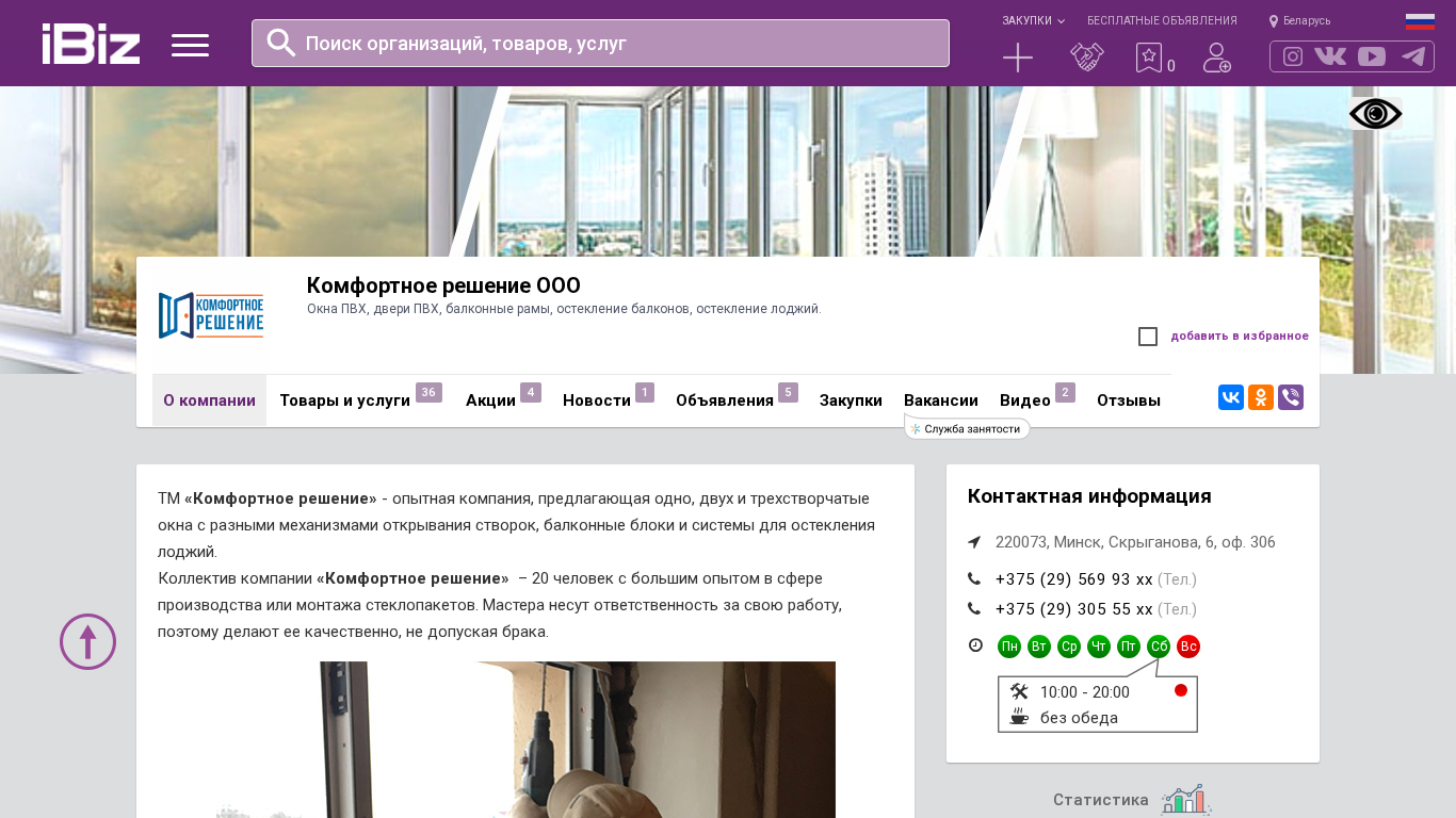 | Название / Заголовок | Комфортное решение ООО - Окна ПВХ, двери ПВХ, балконные рамы, остекление балконов, остекление лоджий.. 220073, Минск, , Скрыганова, 6, оф. 306 |