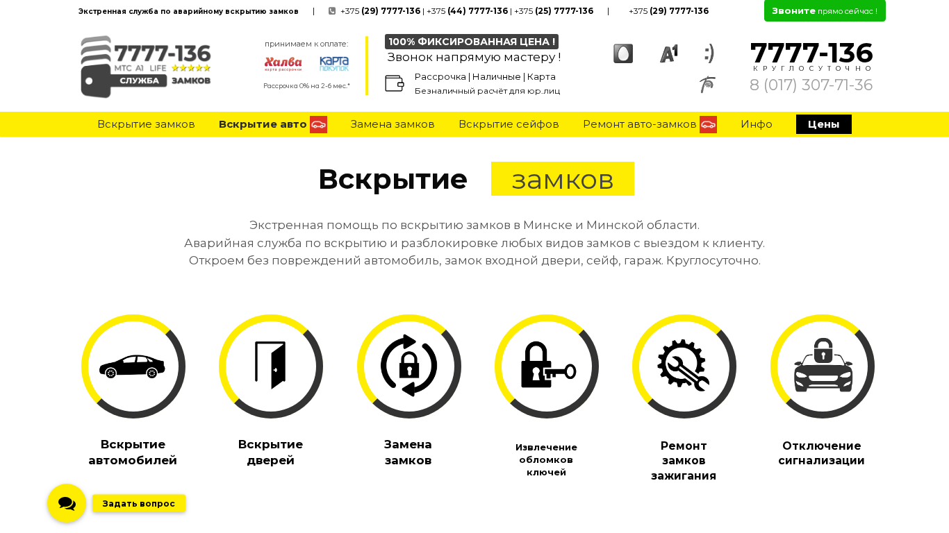 | SEO-описание | Экстренное вскрытие замков в Минске ✓ Откроем без повреждений автомобиль, дверь, сейф, гараж ✓ ☎ 7777-136 (мтс, a1, life) ✓ Круглосуточно ✓ Фиксированная цена ! |