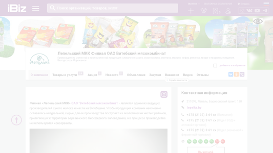 | AI-анализ | The website is for a dairy production company, "Лепельский МКК Филиал ОАО Витебский мясокомбинат," located in Lepeль, Belarus. The company specializes in the production of milk and dairy products, including butter, dry milk, cottage cheese, milk, kefir, curds, and ice cream under the brand name "Лепелька." The company prides itself on using natural ingredients sourced from ecologically clean areas near Berezinsky Biosphere Reserve and avoiding the use of preservatives in production. The website provides information on the company's products and locations of their retail stores. |