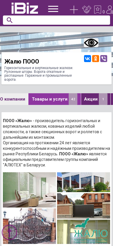 | Название / Заголовок | Жалю ПООО - Горизонтальные и вертикальные жалюзи. Рулонные шторы. Ворота откатные и распашные. Гаражные и промышленные ворота.. 230003, Гродно, Красноармейская, 39 |