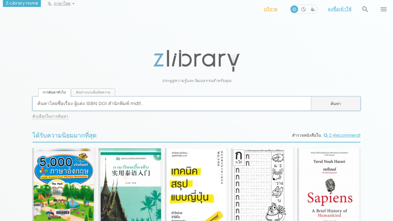 | Название / Заголовок | Z-Library – ห้องสมุด e-book ที่ใหญ่ที่สุดในโลก ประตูสู่ความรู้และวัฒนธรรม |