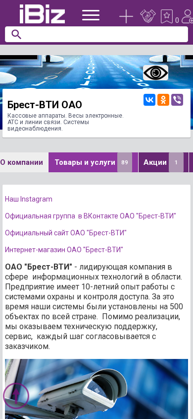 Название / ЗаголовокБрест-ВТИ ОАО - Кассовые аппараты. Весы электронные. АТС и линии связи. Системы видеонаблюдения. . 224020, Брест, , Светлая, 1