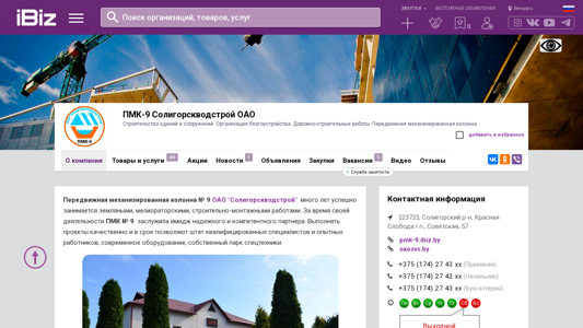 favicon ПМК-9 Солигорскводстрой ОАО - Строительство зданий и сооружений. Организация благоустройства. Дорожно-строительные работы. Передвижная механизированная колонна.. 223723, , Красная Слобода г.п., Советская, 57