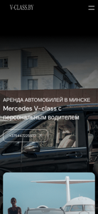 | AI-анализ | --- The portal v-class.by offers car rental services in Minsk with a personal driver. Corporate servicing and hourly rental are available. Transfers to Minsk, Russia, and European Union airports are provided. Mercedes V-class is offered for rent with a driver. The cost for renting a Mercedes V-class with a driver in Minsk for a whole day is BYN RUB (not a public offer, standard price 700 BYN). The hourly rate is BYN per hour (22,000 ₽), with an additional 2,500 ₽ per hour. A working day consists of 10 hours. Local trips within Minsk are available without airport transfers, and include water, napkins, charging devices, and umbrellas. A daily allowance of 200km is included in the price. |