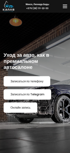| AI-анализ | The portal kaplya.by offers car washing services using a top-selling WordPress theme. The website provides details on three different packages for sedan, crossover, minivan, and SUV vehicles with various prices ranging from BYN 45 to BYN 180, depending on the package and the size of the vehicle. The services include pH-7 foam wash, contactless polishing, and air drying. Premium packages offer additional clay-bar and ceramic wax treatments. Customers can choose to book a car wash via phone, Telegram, or an online form. The website also mentions a "Russian-style" car wash option, which includes a manual wash without the use of brushes and a manual drying using microfiber. The website has a short wait time and is affordable. |
