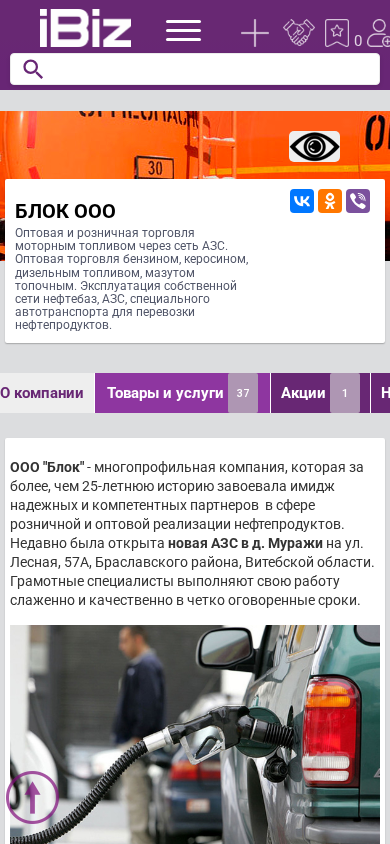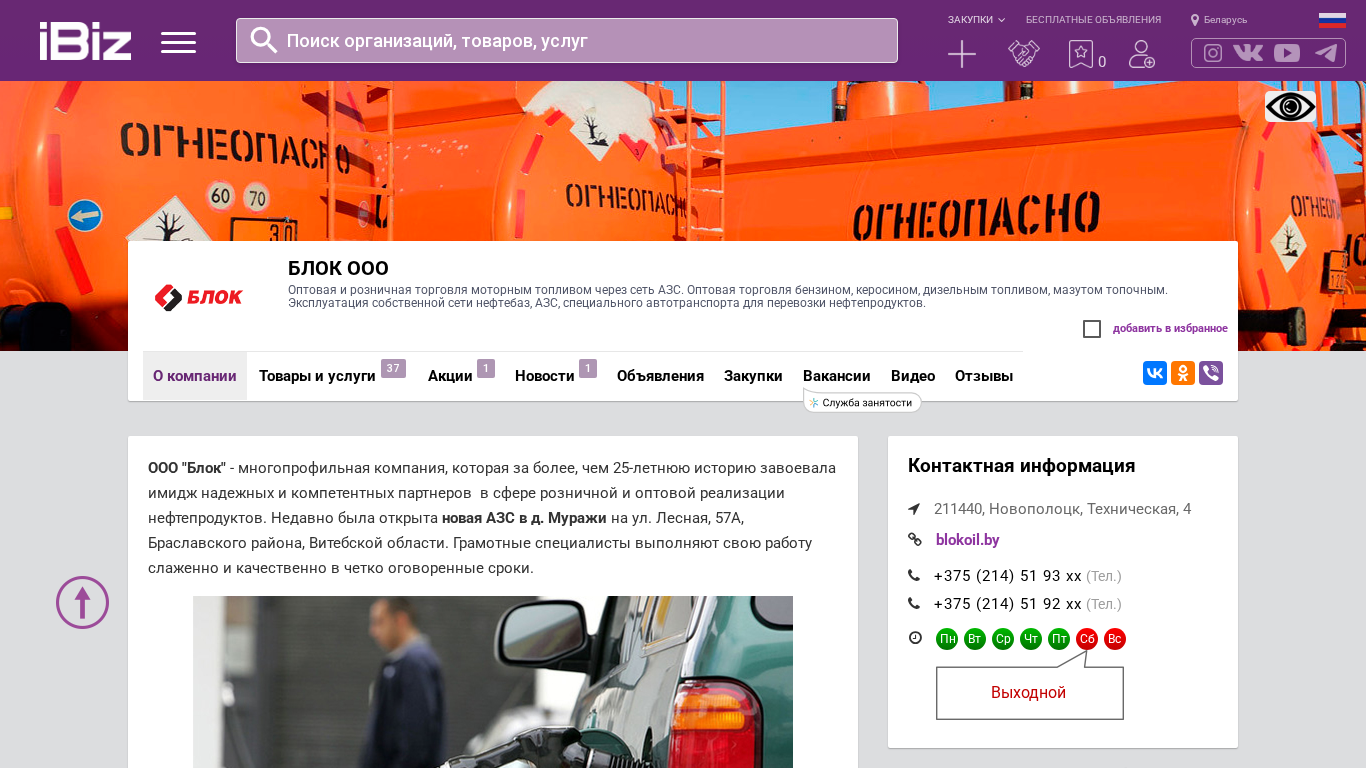 | AI-анализ | The web project "Bloc OOO" is a Belarusian company specializing in both wholesale and retail sale of motor fuel through a network of filling stations (АЗС). The company offers wholesale trade in gasoline, kerosene, diesel fuel, and topping furnace fuel. It also operates its own network of gas stations, fuel depots, and special transport for the transportation of fuel products. The company is located in Novopolotsk, Belarus, at Technica Street, 4. |