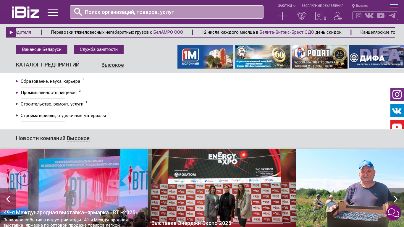| Название / Заголовок | Высокое - каталог организаций и предприятий | iBiz.by |