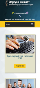 | AI-анализ | This online resource, Fortuna Consult, offers accounting and tax services in Belarus. The website includes sections on the company, a list of services provided, and detailed descriptions for each of these services, including accounting, tax consultation for physical persons, initiating audit, and certifications. The company, OOO "Fortuna-Consult," is described as a dynamic consulting firm with highly qualified specialists able to handle a wide range of accounting and tax needs. The site also features a contact section. |