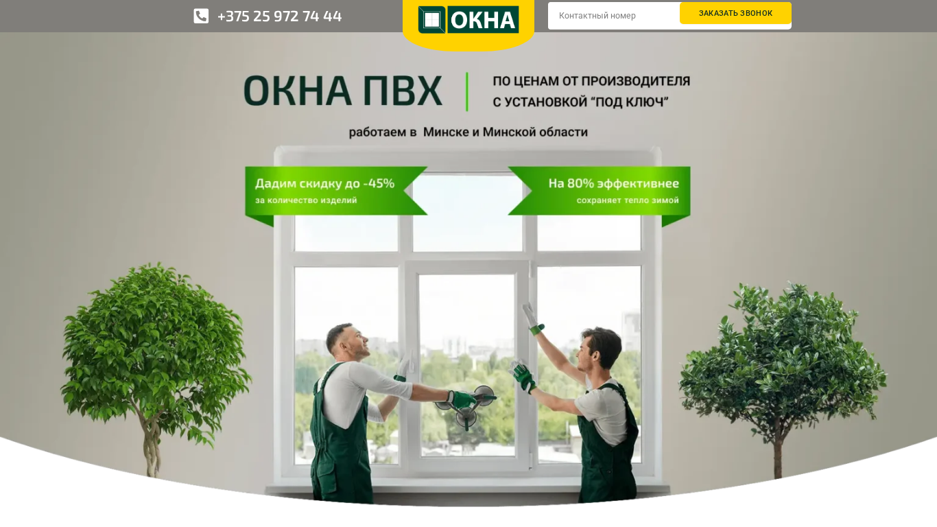 | SEO-описание | Пластиковые окна по ценам от производителя! С установкой под ключ. Скидки до 45%. Вызов замерщика БЕСПЛАТНО! +375(25)972-74-44 |