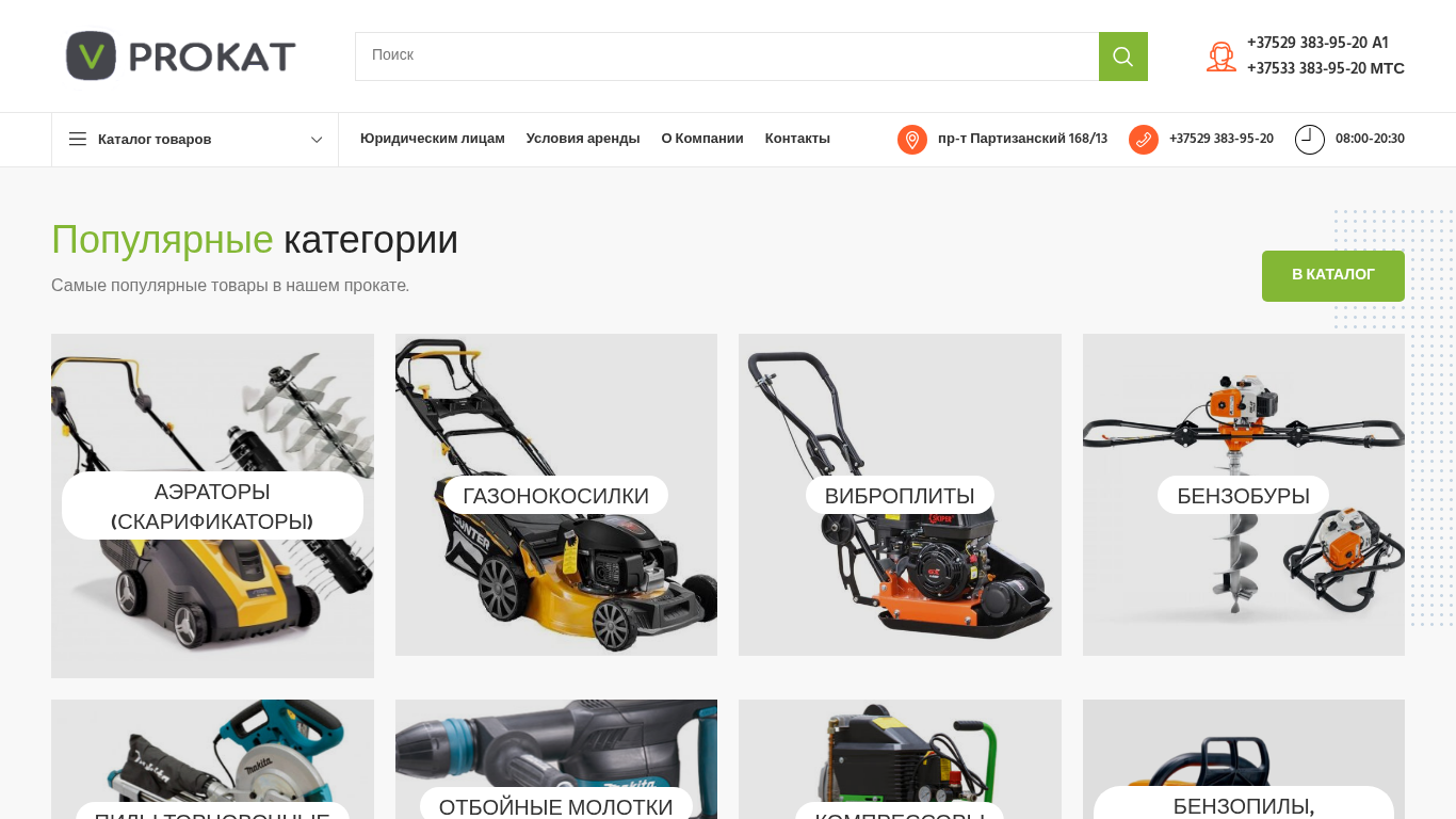 | SEO-описание | Аренда инструмента в Минске от компании V-prokat. Взять напрокат электроинструмент и строительное оборудование на выгодных условиях! ✔️ Консультации при выборе ☑️ Без выходных. |