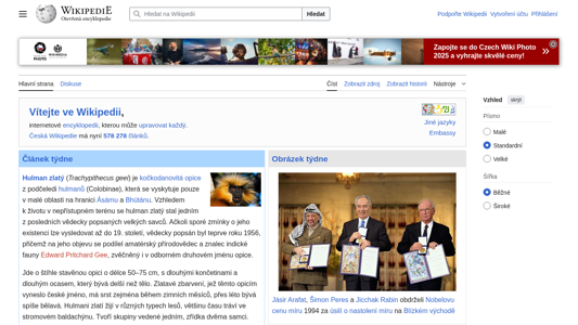 | AI-анализ | This online resource is the Czech version of Wikipedie, an open encyclopedia. The title is "Wikipedie, otevřená encyklopedie" and the description includes the phrases "open encyclopedia" and "everyone can edit". The keywords include "Wikipedia", "Wikimedia", "encyclopedia", "Czech", "open", and "edit". The top words are "dal", "nky", "hlavn", "wikipedii", "nobelovu cenu", "str", "kter", "jna", "wikipedie", "strana", "pod", and "wiki". The site contains 578,278 articles and has a wide range of topics, from scientific discoveries like the Hulman zlatý, a golden langur, to general knowledge |