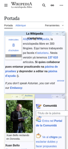 | Canonical URL | https://ast.wikipedia.org/wiki/Portada |