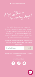 The web project "Hey Stacey Hair Extensions" focuses on selling hair extensions and related products. The website uses the keywords "hair" and "extensions" frequently, with the former appearing three times more often than the latter. Users are encouraged to sign up for updates, early access, and special offers ahead of the store's relaunch. Social media platforms, particularly Facebook, are mentioned for potential sneak peeks and reveals. The website will be operated using Shopify, and access is granted through a password.