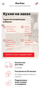 | AI-анализ | --- The portal is an e-commerce website specializing in kitchen furniture sales. It offers kitchens for sale in Minsk and Samara region with guarantees for the best prices and quick delivery. The website provides a shopping cart for users to add items to, featuring various types of sofas, dining tables, and lamps with discounts and different prices. Users can select product parameters on the product page and place orders with a form. The website also offers financing options and free delivery in Samara. The website has over 1600 units of kitchens produced and installed, with over 1200 color options available for customers. The design and pricing of the kitchens are customized based on user needs. The website is built on WordPress. |