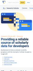 | AI-анализ | The website, Semantic Scholar Academic Graph API (<api.semanticscholar.org>), offers developers access to scholarly data through its REST API. The API provides information about authors, papers, citations, venues, and more, enabling users to link directly to the corresponding page on semanticscholar.org for further details. The API is organized into two main services: Academic Graph and Recommendations. The Academic Graph service offers data about authors, papers, citations, venues, and SPECTER2 embeddings. The Recommendations service provides recommended papers similar to a given paper. The Semantic Scholar API is known for its reliability and ease of use, as evidenced by testimonials from partners like Litmaps and Connected Papers. |