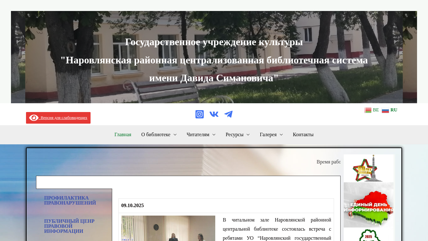 ГУК "Наровлянская районная централизованная библиотечная система имени Давида Симановича"