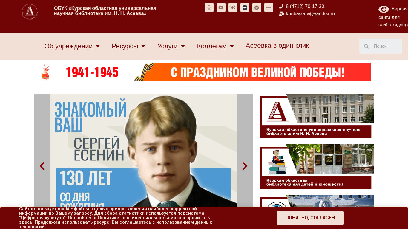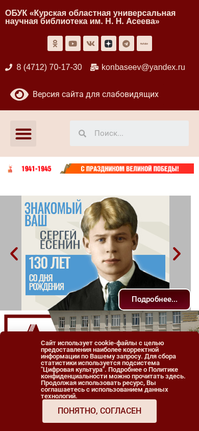 Главная - ОБУК «Областная библиотека им. Н. Асеева»