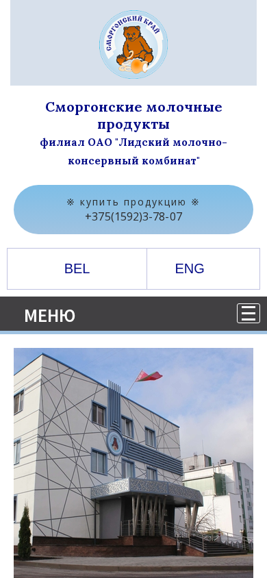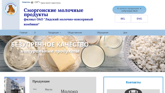 --- This website is the official page for Smorgon Milk Products, a production facility under the umbrella of OAO "Lidsky Molchno-Konservnyy Kombinat" located in Belarus. The company specializes in the manufacture of dry milk, curds, butter, ice cream, and other dairy products. Visitors can find information on the organization, its contacts, and can request quotes for exported products. The site also offers a price list and contact details for the quality management department.