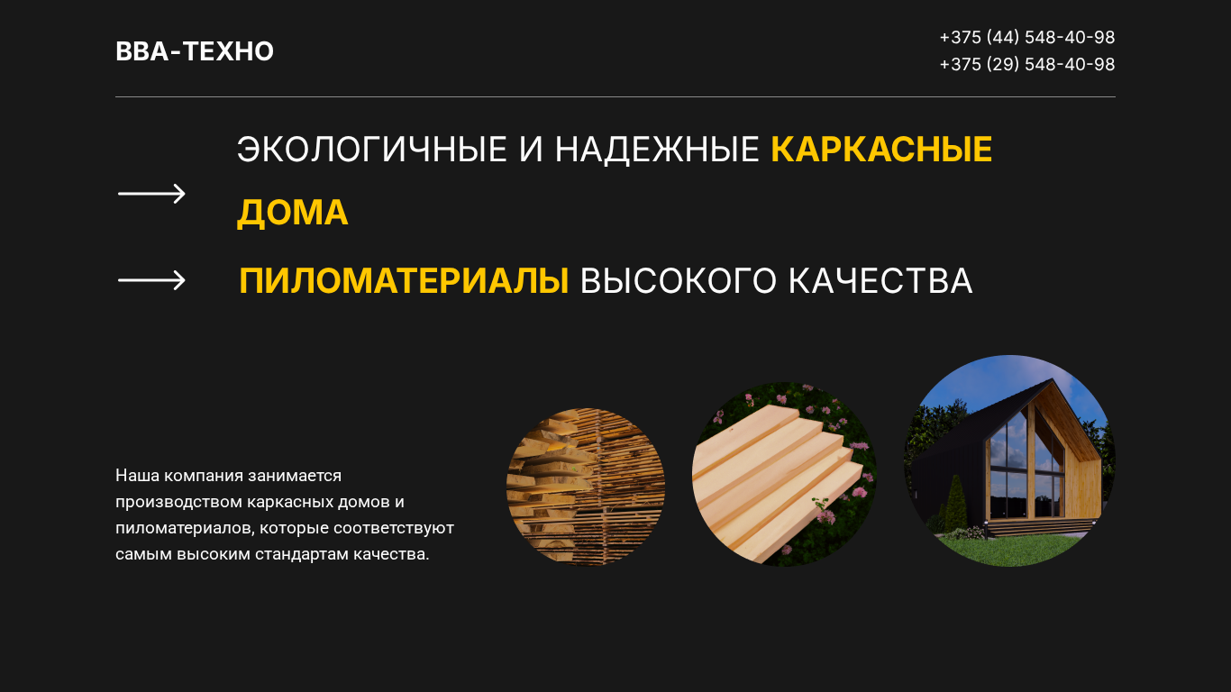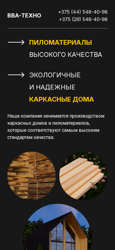 | AI-анализ | This website is for a Belarusian company named VVA-Techno, specializing in the production of high-quality carpentry materials, including timber, sawn timber, profiled timber, and pallet wood. The company's products are suitable for constructing houses, saunas, bathhouses, fences, and various other structures. VVA-Techno is also ready to provide individual solutions and help clients choose the optimal variant for their projects. Visitors can leave a request on the site, and the company will contact them to clarify the details. The company's location is in the village of Kolodishchi, in the Mińsk region, and its UNP number is 691750254. The operating hours are Monday to Friday from 9:00 to 18:00, Saturday from 9:00 |