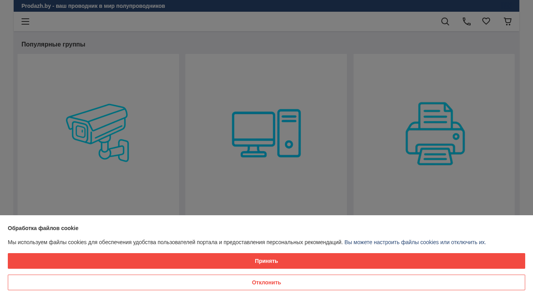 | AI-анализ | language: ru  The website Prodazh.by serves as a guide in the world of semiconductors for "ОАО "Брест-ВТИ"". It provides contact information, goods and services, and prices for the company. Popular product categories include computer technology, networking equipment, surveillance equipment, and monitors. The site features various IP-video recorders from Tiandy, such as the TC-R3104, TC-R3105, and others, with various specifications and prices in stock. The site also includes information on the company, contacts, delivery and payment, and a policy on cookie usage. It was built using the Deal.by platform. |
