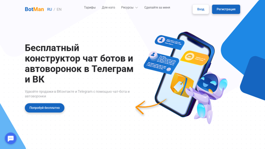 | SEO-описание | Конструктор чат ботов телеграм и вконтакте, сервис чат ботов для социальных сетей. BotMan - простой и понятный сервис ботов и воронок продаж любой сложности и под любые задачи. Сервис Botman предлагает набор проверенных, рабочих шаблонов чат-ботов под разные сферы бизнеса и нужды. |