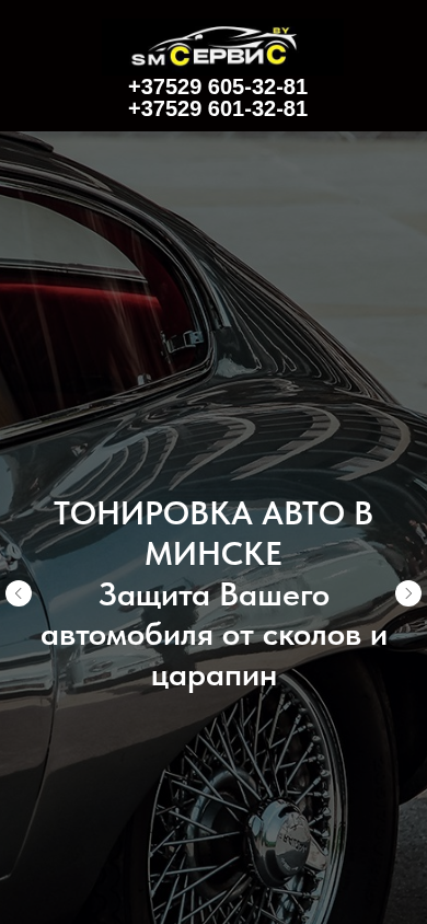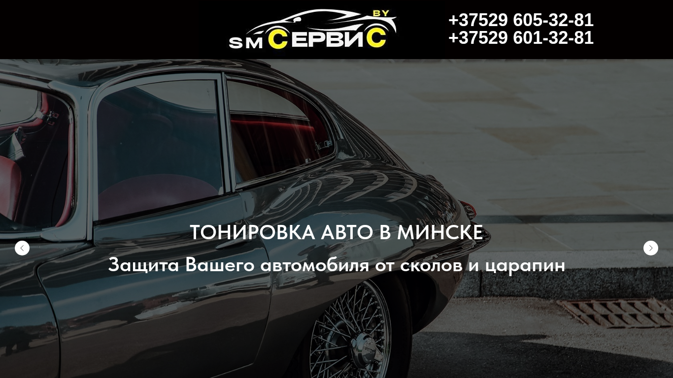 | SEO-описание | SM Service – профессиональная тонировка авто в Минске. Защита стекол, бронирование фар. Гарантия качества и выгодные цены. Звоните прямо сейчас! |