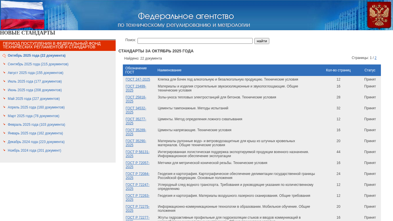 | Название / Заголовок | Стандарты за Октябрь 2025 года | Страница 1 | НАЦИОНАЛЬНЫЕ СТАНДАРТЫ |