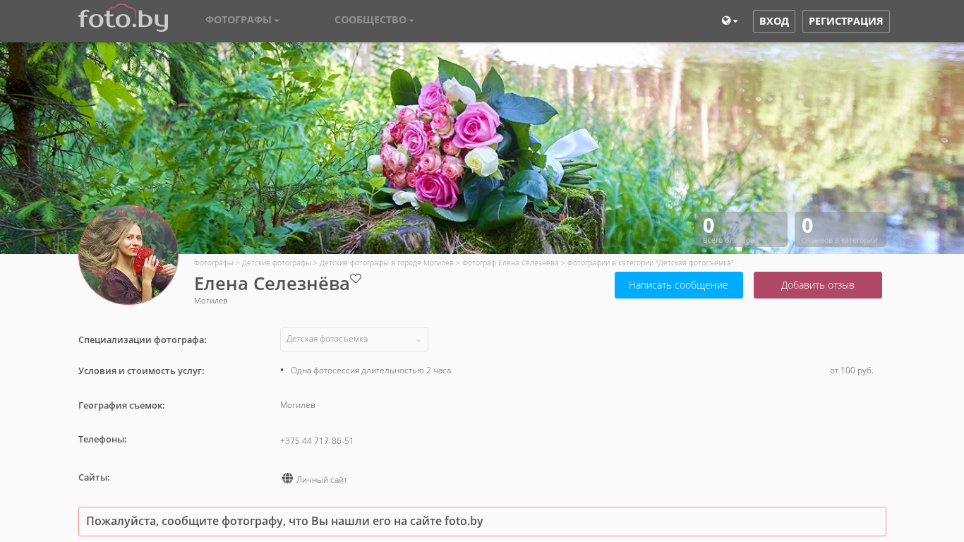 | SEO-описание | Фотографии в категории "Детская фотосъемка". Сайт фотографа Елена Селезнёва. Я работаю как детский фотограф, портретный фотограф, семейный фотограф в городах Могилев |