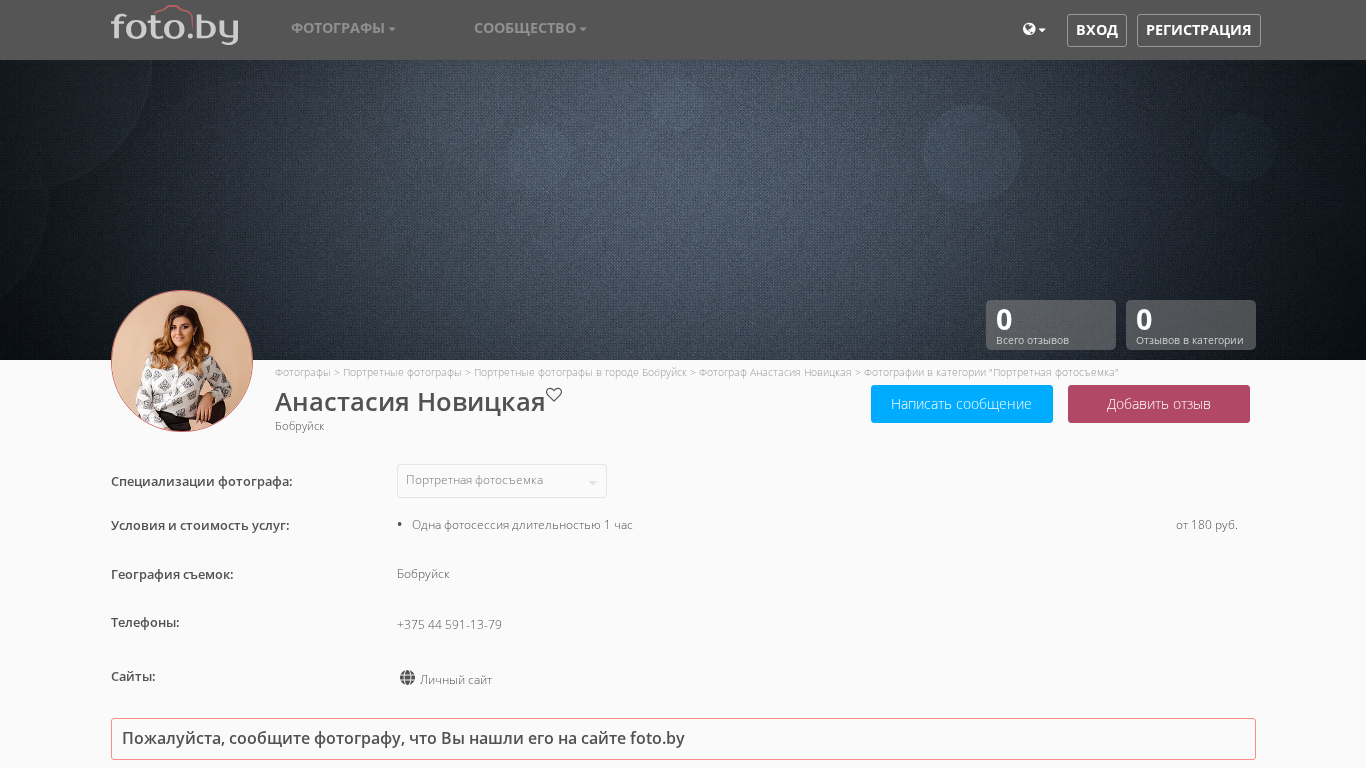 | SEO-описание | Фотографии в категории "Портретная фотосъемка". Сайт фотографа Aнастасия Новицкая. Я работаю как свадебный фотограф, семейный фотограф в городах Бобруйск, Минск, Гомель |