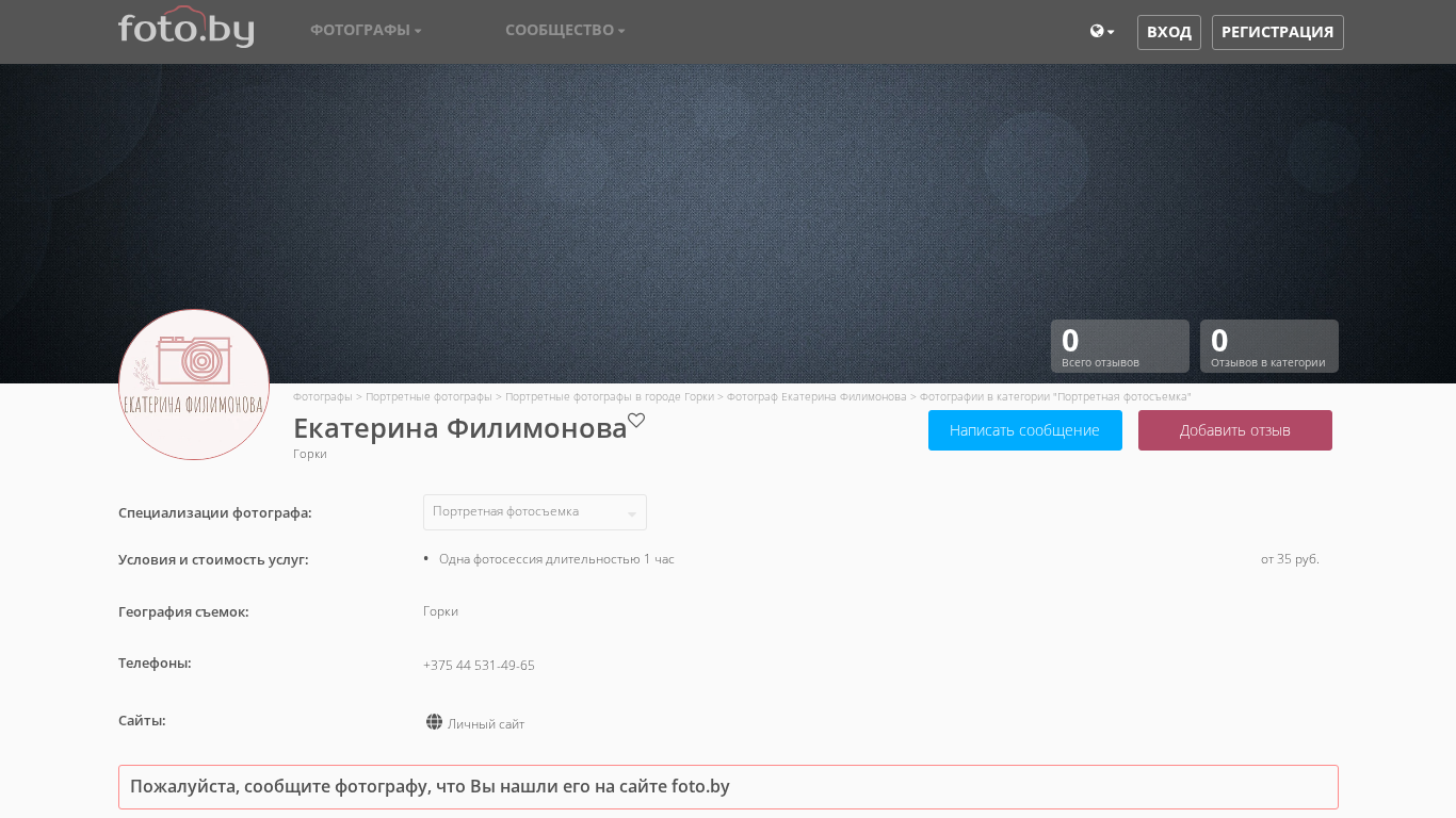 | SEO-описание | Фотографии в категории "Портретная фотосъемка". Сайт фотографа Екатерина Филимонова. Я работаю как портретный фотограф в городах Могилев и Горки |