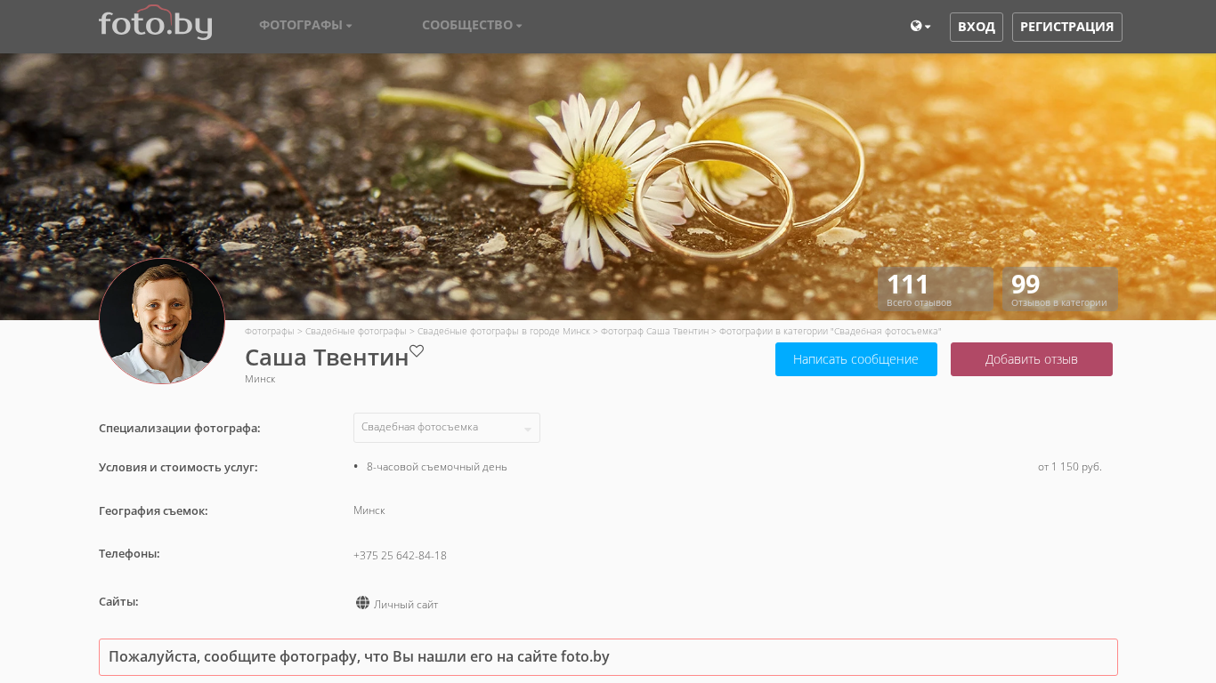 | SEO-описание | Фотографии в категории "Свадебная фотосъемка". Живые, эмоциональные и искренние свадебные фотографии от фотографа Саши Твентина |