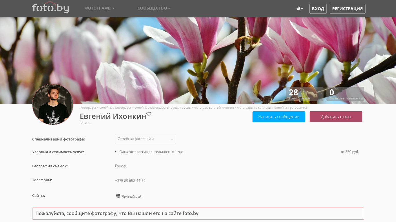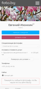 | AI-анализ | The web project is a photography portfolio by Evgeniy Ikhonkin, based in GoMEL, Belarus. The site offers photographs in the "Family Photography" category. Evgeniy works as a children's photographer in the cities of GoMEL, RechiCA, SvetloGORsk, DobruSH, Vetka, and ZhLObin. |