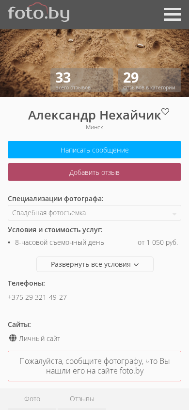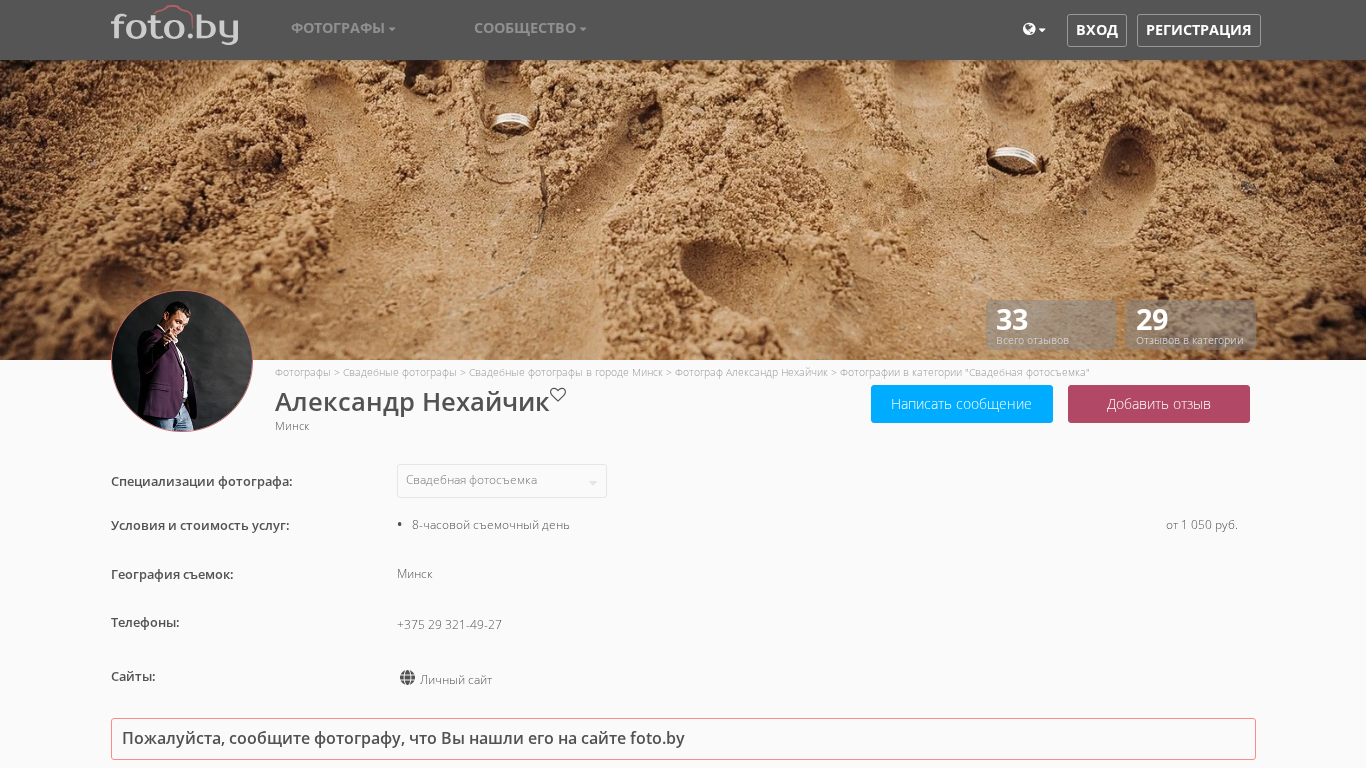 | SEO-описание | Фотографии в категории "Свадебная фотосъемка". Сайт фотографа Александр Нехайчик. Я работаю как свадебный фотограф в городах Минск, Молодечно, Вилейка |