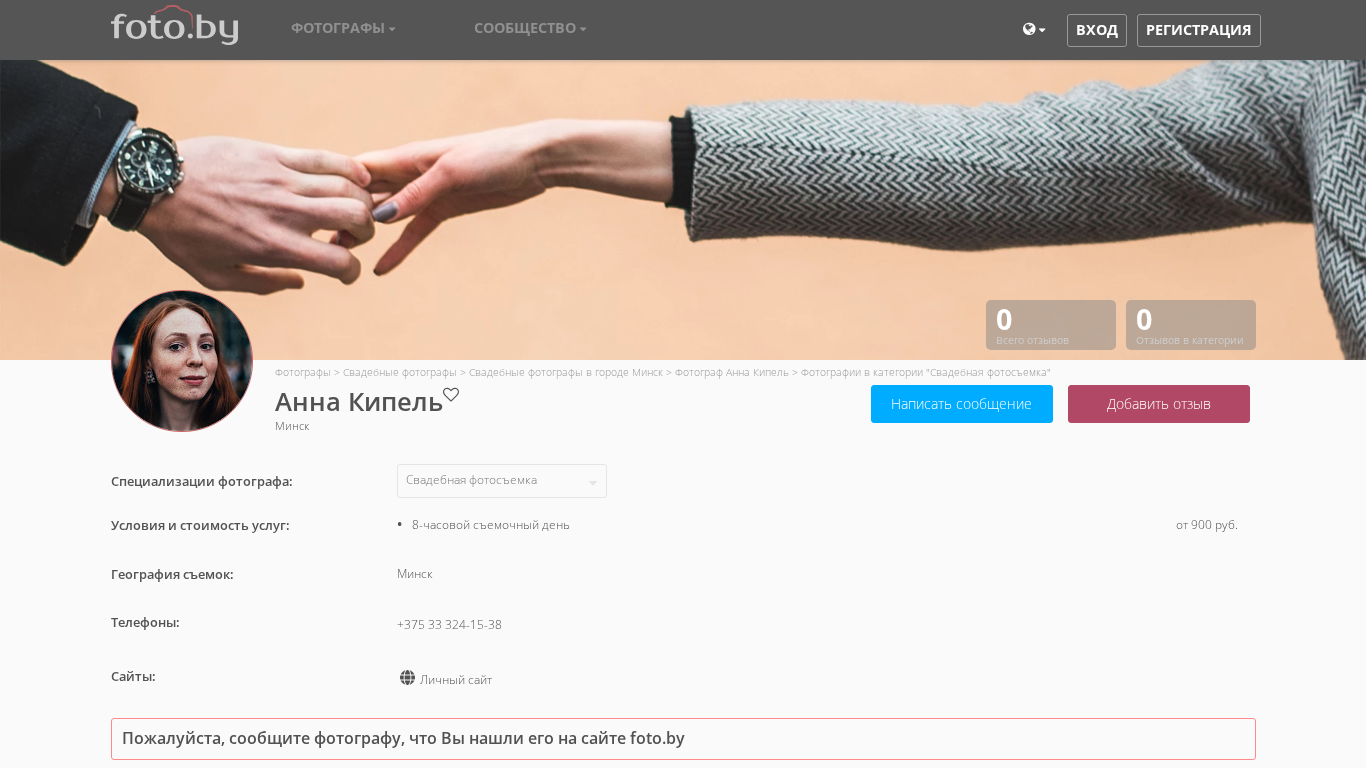 | SEO-описание | Фотографии в категории "Свадебная фотосъемка". Сайт фотографа Анна Кипель. Я работаю как фотограф Love Story, детский фотограф, портретный фотограф в городах Минск, Бобруйск, Молодечно |