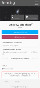 | AI-анализ | The portal shooter.foto.by is a photography website featuring the works of Belarusian photographer Andrew Shokhan, who specializes in education photography, object photography, and advertising photography. The website provides information on his services, pricing, and geographical coverage, which is limited to the city of Minsk. The site also includes a community section for photographers and a blog. The main page displays a catalog of photographers, with Andrew Shokhan's portfolio appearing under the "Education Photography" category. The site offers users the ability to write reviews for photographers and view their pricing and portfolios. The domain shooter.foto.by is a subdomain of the larger foto.by photography platform. |