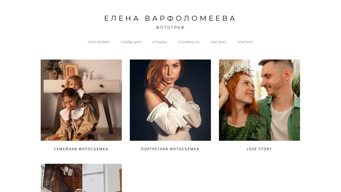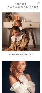 The web project "Фотограф Е В" is a photography website for Elena Varlamovich, a family photographer based in the city of Minsk. The site showcases Elena's portfolio, which includes various types of photography such as family portraits, love stories, and ceremonial events like christenings and weddings. Visitors can view a slide show of her work, read customer reviews, and inquire about pricing and contact information. Elena also offers portrait and family photography services. The domain is registered under the .BY extension and is hosted on the foto.by platform.