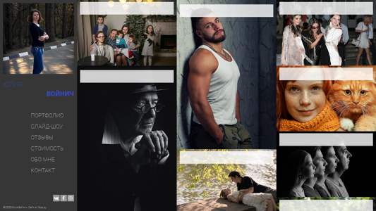 | SEO-описание | Фотограф Юлия Войнич - выполняю следующие виды фотосъемок: детская фотосъемка, портретная фотосъемка, фотосъемка мероприятий. Работаю в городах: Минск |