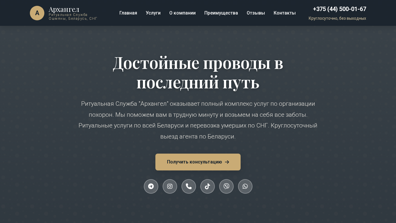 | Название / Заголовок | Ритуальная Служба "Архангел" - достойные проводы в последний путь. Ошмяны, Гольшаны, Минск, Беларусь. |