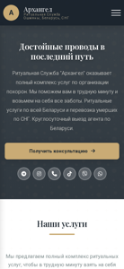 | AI-анализ | This online resource, titled "Ритуальная Служба 'Архангел' - достойные проводы в последний путь," offers comprehensive funeral services across Belarus and the CIS region. The company provides a full range of services, including funeral arrangements, document assistance, and transportation of the deceased. Operating 24/7, their agents are available throughout Belarus. Services include traditional funeral arrangements with consideration for religious and cultural traditions, cremation services, and memorial table organization. Their offerings also include assistance in selecting urns and organizing a farewell ceremony and burial site. Additionally, they offer transportation services for the deceased, including domestic and international transfers, and possess their own fleet of hearses. Their website showcases their work, emphasizing their commitment to respecting traditions and the deceased. |