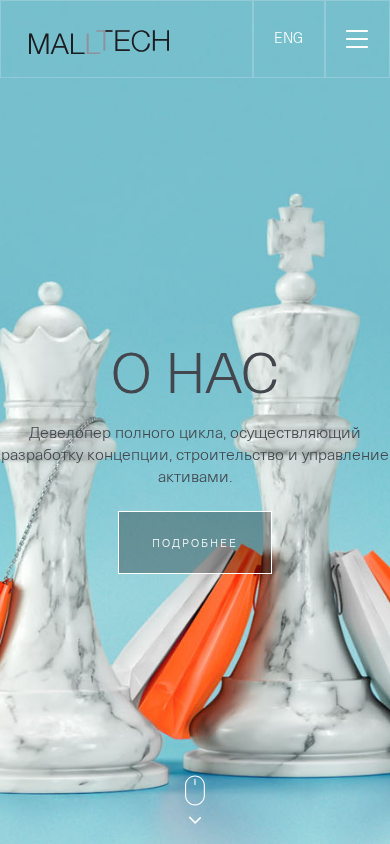 | SEO-описание | MALLTECH – российская девелоперская компания, работающая в секторе B2B2C. Выстраивая инфраструктуру управления ТРЦ, мы ориентируемся на интересы потребителя. |