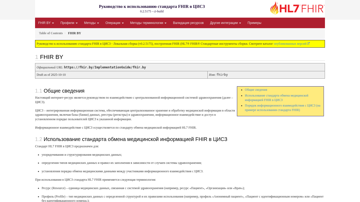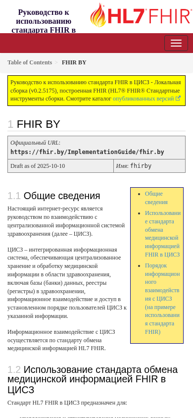 | Название / Заголовок | FHIR BY - Руководство к использованию стандарта FHIR в ЦИСЗ v0.2.5175 |